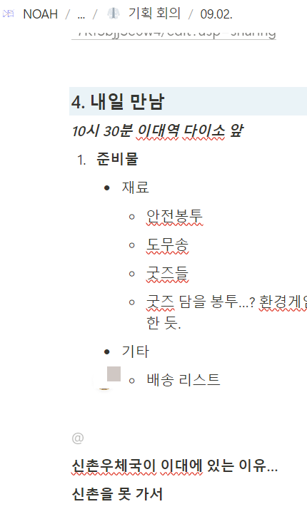 2024.09.02. 정기회의. 우리 내일 포장해요. 본문